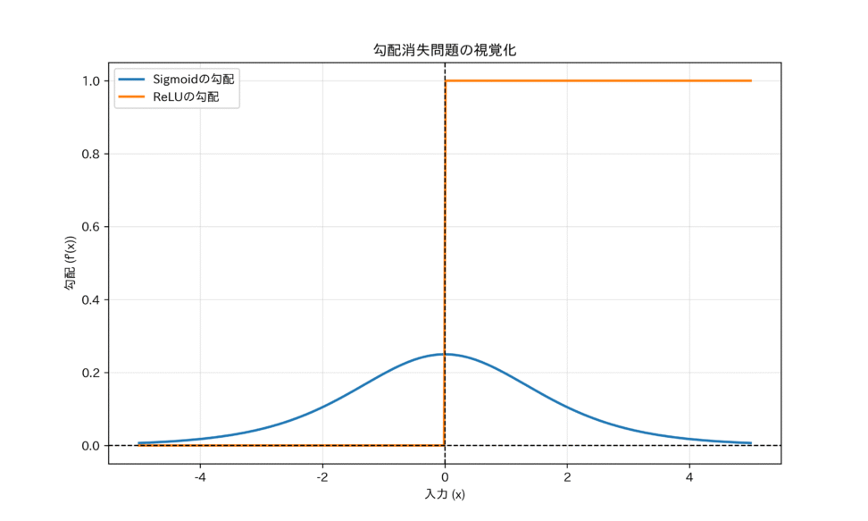しかし、シグモイド関数には、勾配消失問題という課題がありました。